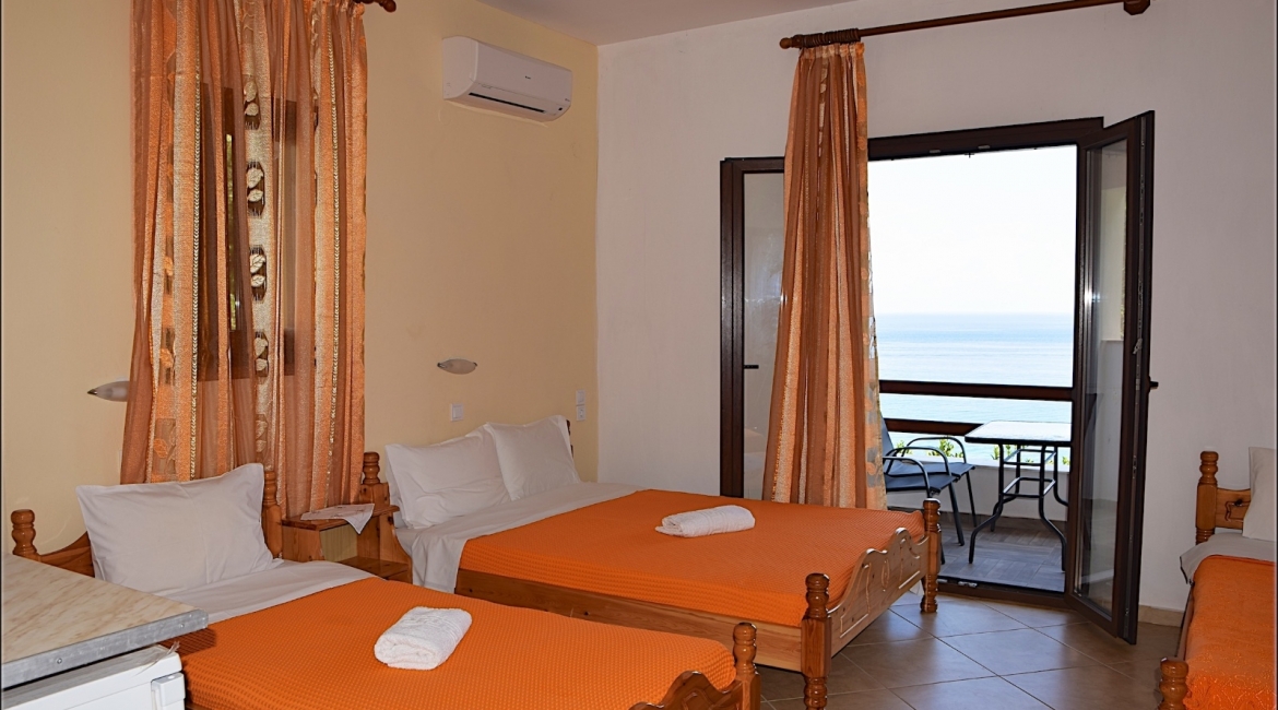 Στο διαμέρισμα 12 που βρίσκεται στον πρώτο όροφο μπορούν να φιλοξενηθούν απο 2 εως 5 άτομα. Υπάρχει δυνατότητα τοποθέτησης έξτρας κλίνης εαν ζητηθεί. Ο ενιαίος χώρος προσφέρει κουζίνα με φουρνάκι καθώς ένα διπλο κρεβάτι και δυο μονά.