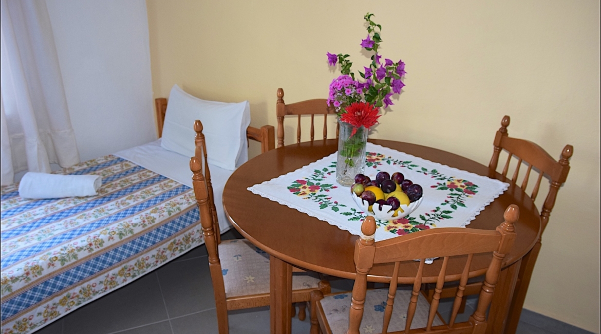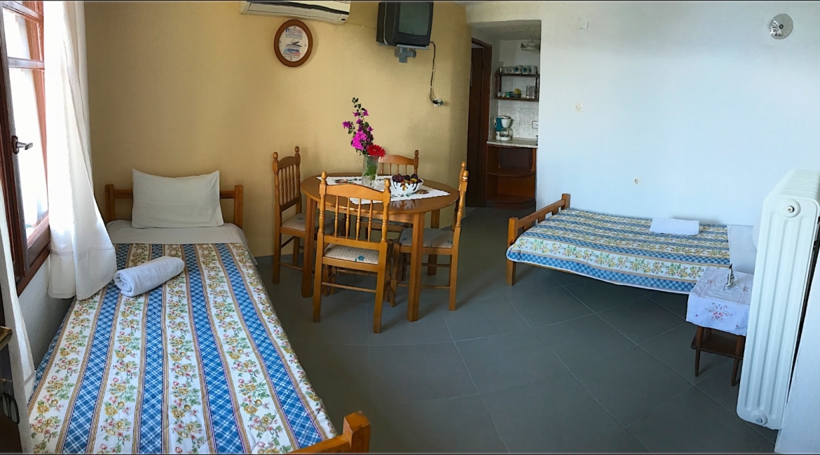 Το δίχωρο σπιτάκι που βρίσκεται στην αυλή μας μπορεί να δεχθεί με άνεση απο 2 εως 5 άτομα. Είναι κατάλληλο για 2 ενήλικες και 3 παιδιά καθώς αποτελείται απο μια κύρια κρεβατοκάμαρα και σαλόνι με δύο μονά κρεβάτια, κουζίνα και μπάνιο.